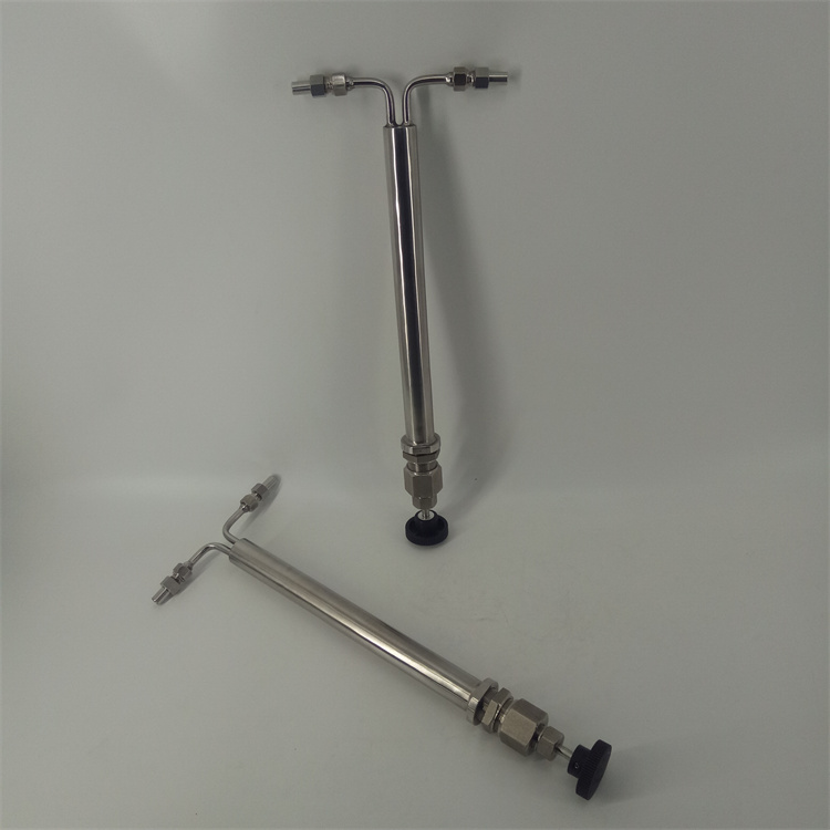 雙針式減壓閥采用超長調(diào)節(jié)通道和超長調(diào)節(jié)閥桿的設(shè)計,很大范圍的進行流量、壓力的調(diào)整。棒針式減壓閥JYF-32C流量調(diào)節(jié)從每公鐘150毫升至4公升、壓力下降至5000Psig的345巴爾格。該減壓閥的減壓的主要原理是當高壓樣水通過時,利用細長棒針與管內(nèi)孔之間的間隙,達到減壓的目的。當減壓閥的入口處壓力一定時,只須改變棒針的插入深度,即可調(diào)整減壓閥出口壓力,控制樣品流量。