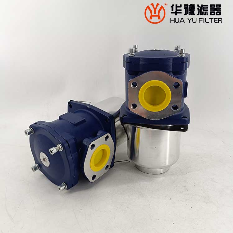 該過濾器的濾芯采用化纖過濾材質(zhì),具有過濾精度高,通油能力大,初始壓力損失小,納污量大等優(yōu)點(diǎn),并裝有壓差發(fā)訊器及旁通閥。當(dāng)濾芯堵塞到進(jìn)出油口壓差為0.35MPa時,便發(fā)出開關(guān)信號,此時應(yīng)更換濾芯。如果不能馬上停機(jī)或無人來更換濾芯,裝在濾芯上部的旁通閥會自動開啟,以保護(hù)系統(tǒng)。