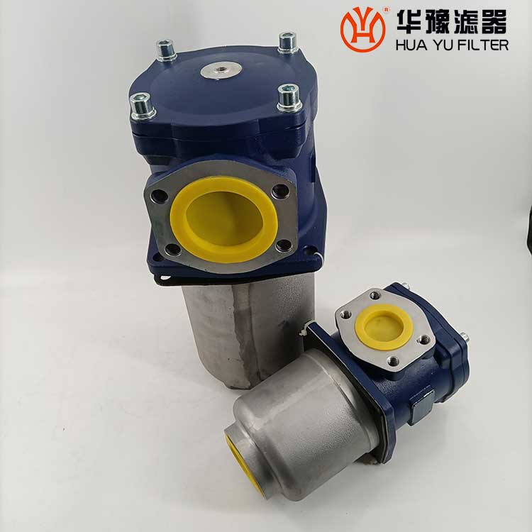 該過(guò)濾器的濾芯采用化纖過(guò)濾材質(zhì),具有過(guò)濾精度高,通油能力大,初始?jí)毫p失小,納污量大等優(yōu)點(diǎn),并裝有壓差發(fā)訊器及旁通閥。當(dāng)濾芯堵塞到進(jìn)出油口壓差為0.35MPa時(shí),便發(fā)出開關(guān)信號(hào),此時(shí)應(yīng)更換濾芯。如果不能馬上停機(jī)或無(wú)人來(lái)更換濾芯,裝在濾芯上部的旁通閥會(huì)自動(dòng)開啟,以保護(hù)系統(tǒng)。