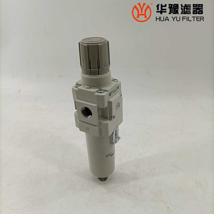 從進(jìn)口流入的壓縮空氣,經(jīng)導(dǎo)流片的切線方向的缺口強(qiáng)烈旋轉(zhuǎn),液態(tài)油水及固態(tài)污染物受離心作用,被甩到水杯內(nèi)壁上,再流至底部。除去了液態(tài)油水及雜質(zhì)的壓縮空氣,通過濾芯進(jìn)一步清除微小固態(tài)顆粒,然后從出口流出。 空氣中的溶膠狀的威力是能通過5um的濾芯的,擋水板能防止下部的液態(tài)油水被卷口氣流中,聚積在水杯內(nèi)的冷凝水,按動(dòng)手動(dòng)按針,便可以從排水口指出。濾芯有金屬網(wǎng)型、燒結(jié)型和纖維凝聚型。燒結(jié)型有銅珠燒結(jié)、樹脂燒結(jié)和陶瓷燒結(jié)等。銅珠燒結(jié)濾芯的表面和內(nèi)部都起到過濾作用,強(qiáng)度好,***,可清洗幾次重復(fù)使用。纖維凈聚型有樹脂類,人造纖維類材料等。金屬網(wǎng)型知識(shí)表面起到過濾作用。